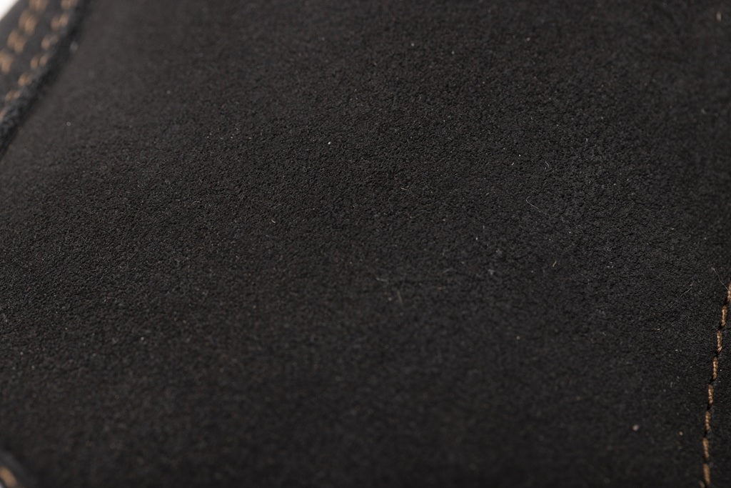 今回の別注でもっともこだわったのが“黒の深み”。アッパーはオリジナルのブラック・ラフアウトレザー。