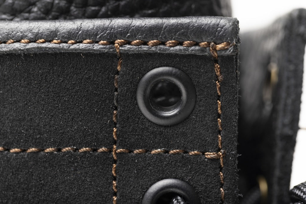 通常モデルは真鍮カラーのハトメを採用していますが、別注モデルはブラックのものを採用。レザーのカラーと相まって、引き締まった表情に仕上がっています